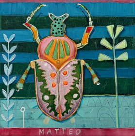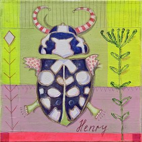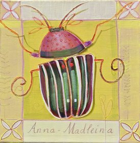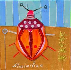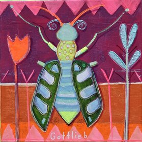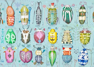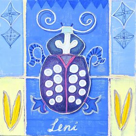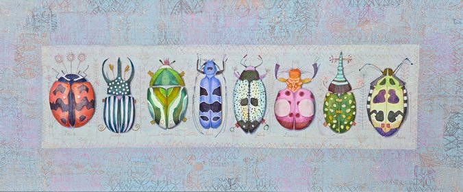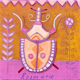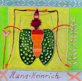 Zum andern sind es fröhliche Käfer, die dem Betrachter ein Schmunzeln entlocken. Diese erheben nicht den Anspruch, naturwissenschaftlich exakt dargestellt zu sein; vielmehr bevölkern sie in kräftigen Farben alleine oder in streng gegliederten Gruppierungen die Bilder. Diese Käfer sind nicht bloss anonyme Tiere – nein, sie alle tragen einen Namen, die ihren jeweiligen Charakter unterstreichen. Oft umranken filigrane Pflanzenmotive die fröhliche Schar und verleihen ihnen eine poetische Leichtigkeit.